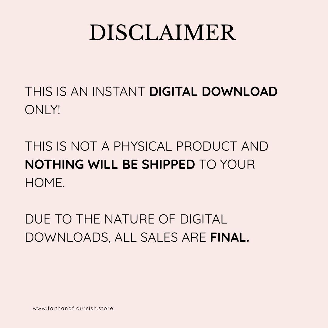 You'll receive 1 PDF document of 50 Bible Verse Cards (5 Themed Sets of 10 Cards each) designed to print on A4 paper (Landscape).